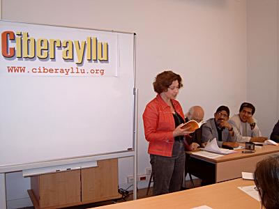 6 de 15: Luisa Ballesteros dice poemas de temas andinos, incluyendo uno sobre el cielo de Tunja, en su Colombia natal.